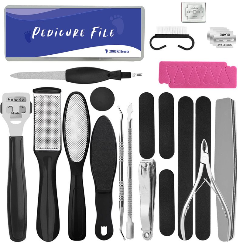 - 【Awesome Pedicure Kit】Everything you need to manicure your feet and more. The skin shaver for a very hard callous is super sharp. There's a V-shaped Cuticle remover, to remove the extra rough skin around your toes, even use it on your fingers. XMOSNZ pedicure tools are very well made and durable after several uses.