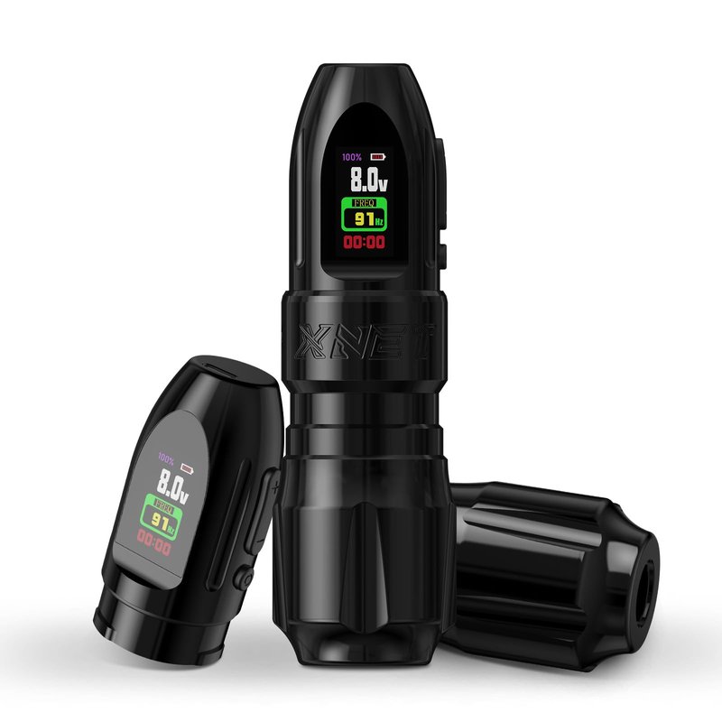 - Size: Xnet wireless tattoo gun made of high quality aluminum alloy material, easy to Easy to install disassemble, maintain and replace parts. Features a light weight, low center of gravity and ergonomic grip. Single pen weight is 186g/6.56oz, length: 145mm/5.7inches, grip: 32mm/1.25inches (Extra grip 36mm/1.41inches).