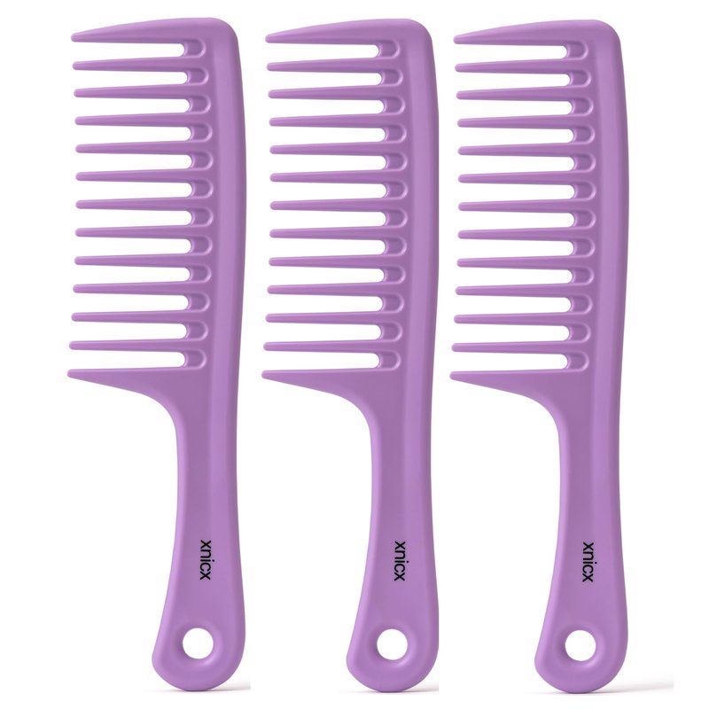 xnicx 3pcs Wide Tooth Comb Set,Detangling Hair Comb for Curly,Wet,Thick Hair,Hair Brush Shower Comb Detangler Hair Wide Comb with Care Handgrip Comb Styling Comb for Women,Men Macaron Purple