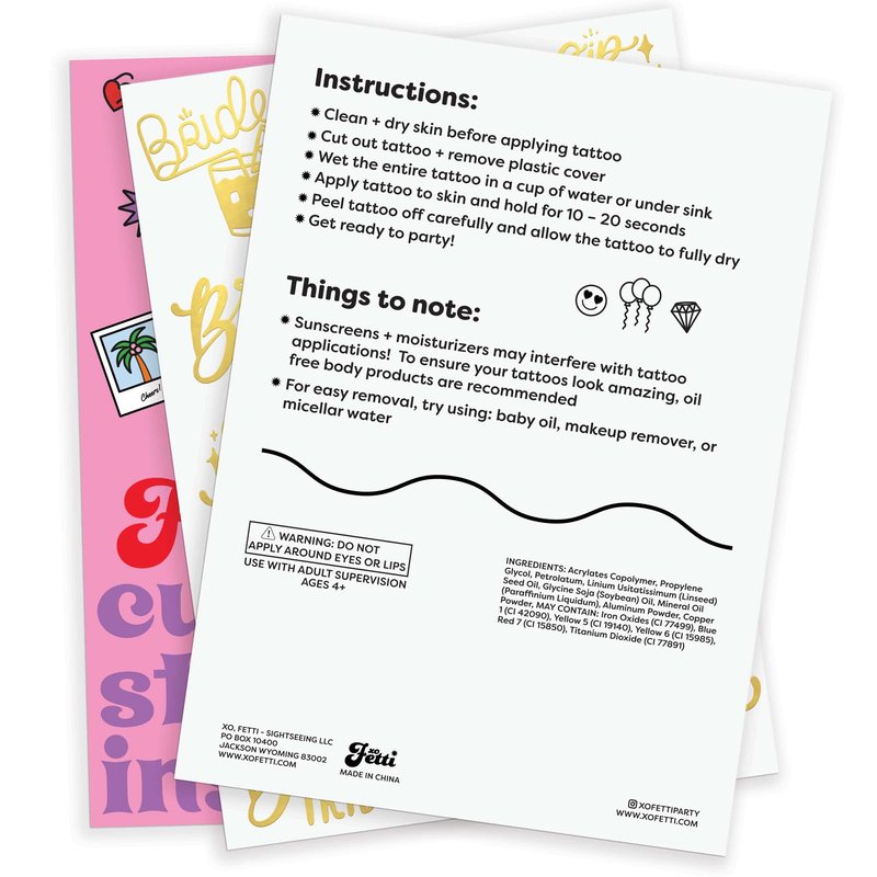 - Long Lasting: these tattoos have been put through rigorous party testing and are 100% guaranteed to last day into night - the perfect bachelorette decorations!