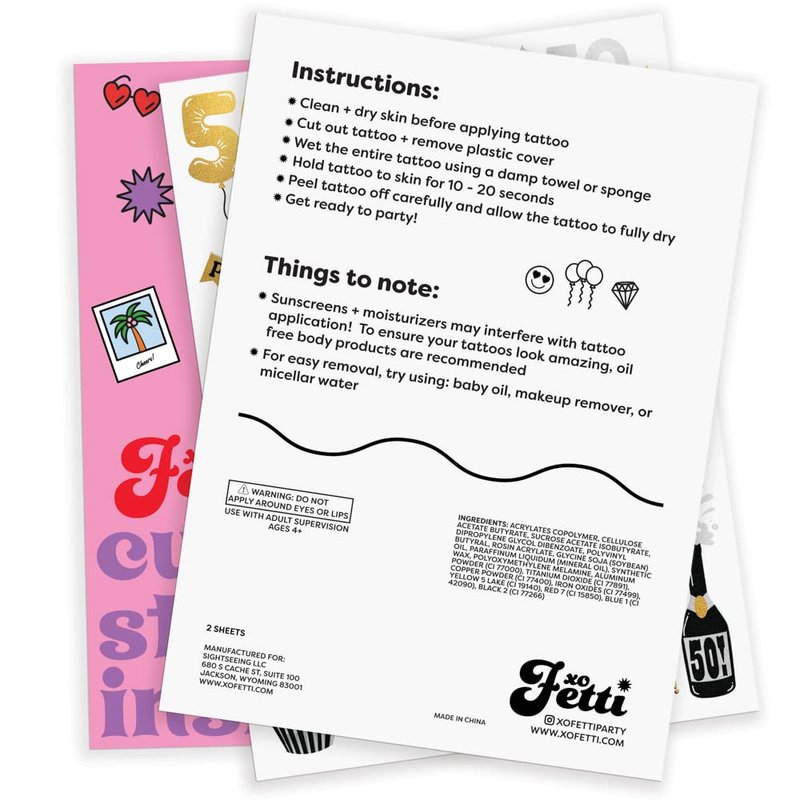 xo, Fetti 50th Birthday Party Decorations 50 and Fabulous Temporary Tattoos - 38 styles | Gold + Silver Foil Fifty Birthday Gift, Birthday Girl