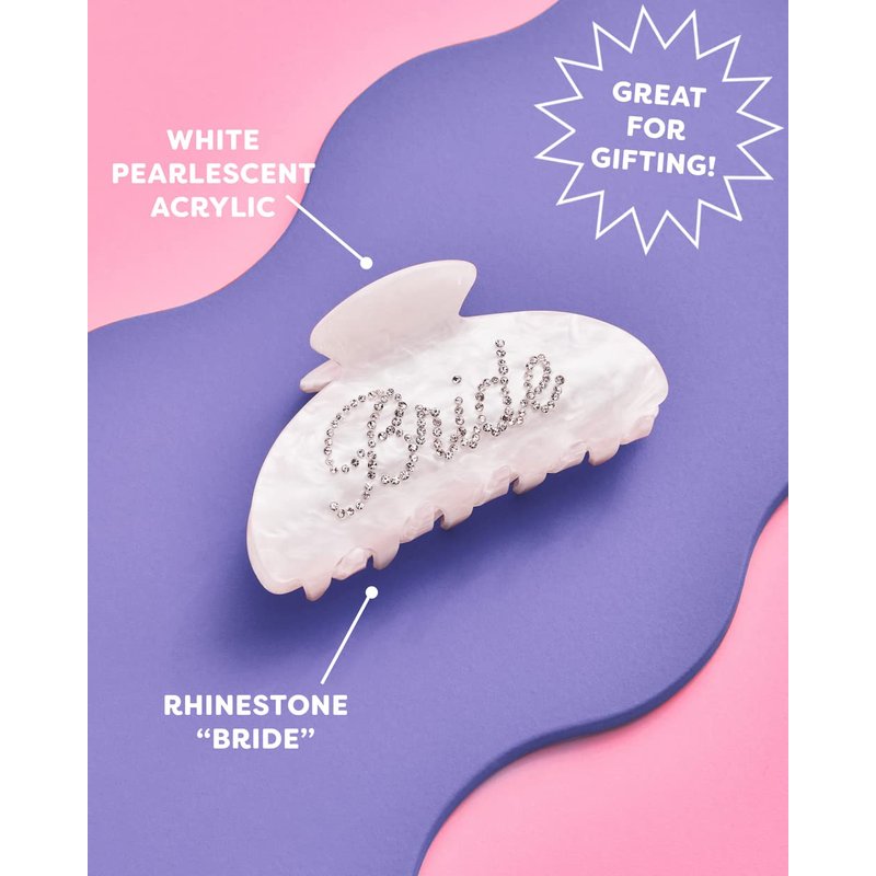 xo, Fetti Bride Claw Clip, White Acrylic Hair Clip, Rhinestone Bride Logo | Bachelorette Party Decorations, Bridesmaid Gift, Bridal Shower, Wedding