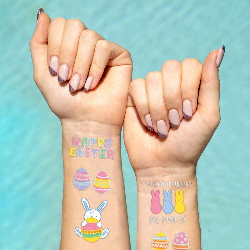 - Happy Easter! Our easter tattoos are the perfect goodie bag favor, party decoration, + stay at home activity :)