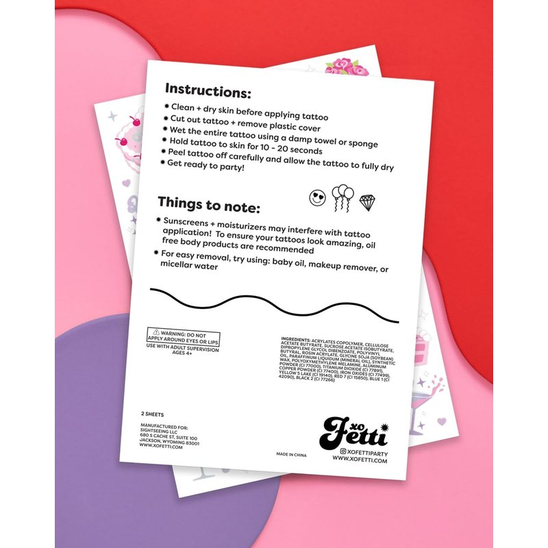 - The Perfect Party Accessory: a fun addition to any birthday party, or celebratory girls night! Each sheet measures 8.25 " x 6 " creating the perfect size tattoos!