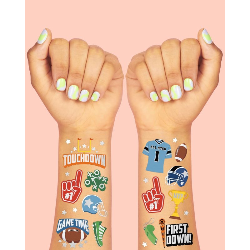- Game Time: our fun temporary tattoos have been put through rigorous party testing and are 100% guaranteed to last day into night - the perfect football theme party decorations!