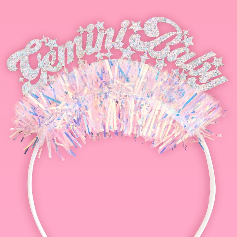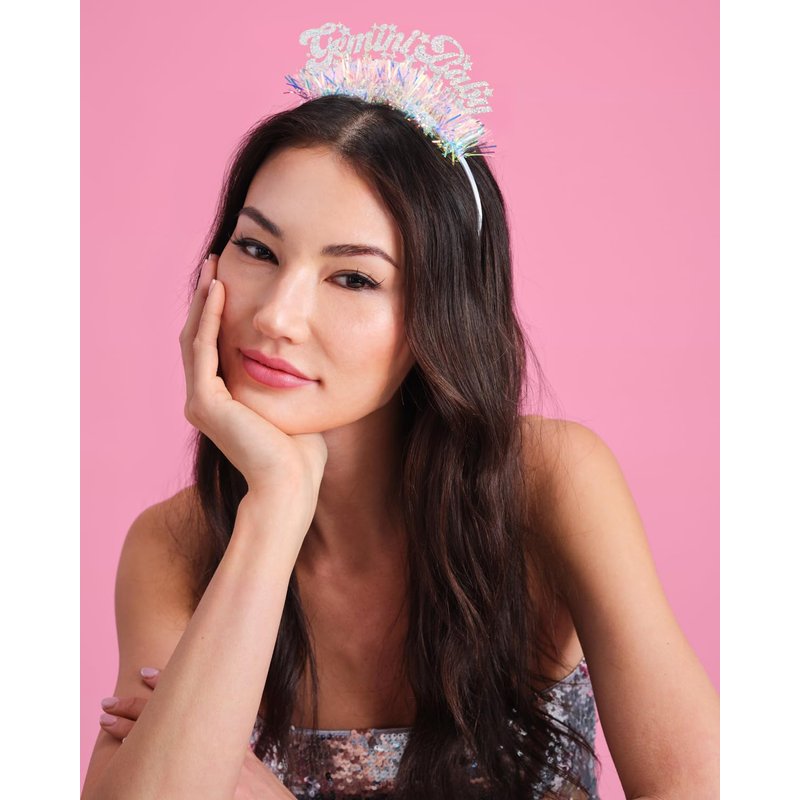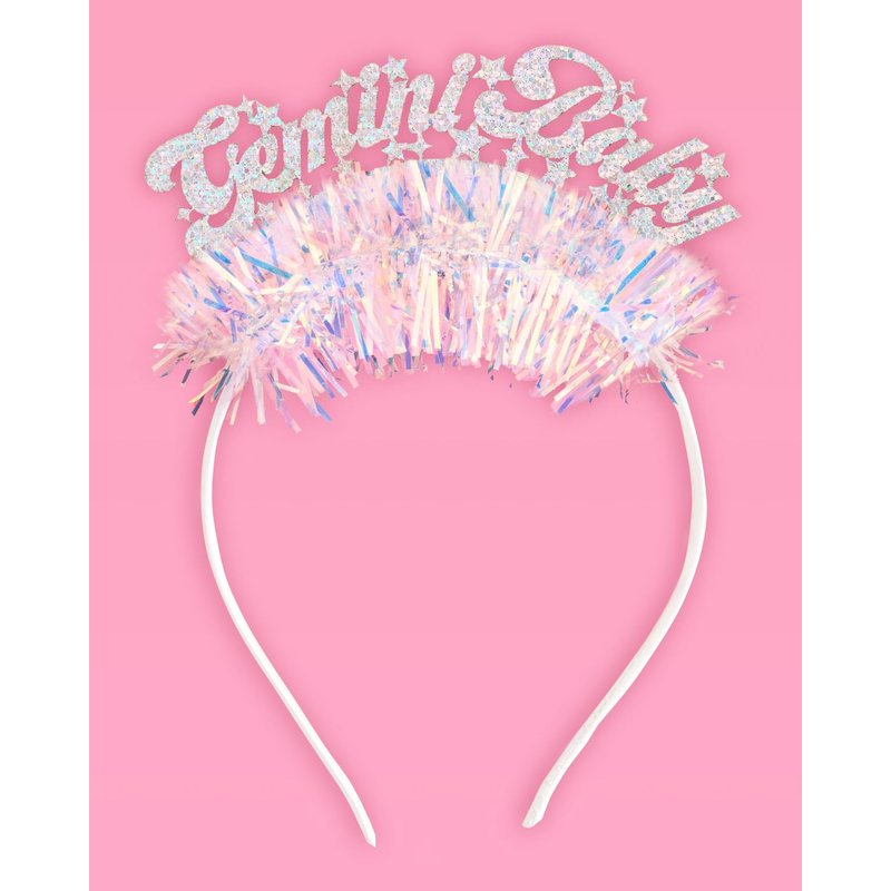 Say hello to your new fav headband! Our headband features a "Gemini Baby" logo made out of the prettiest glitter fabric + iridescent fringe, and will fit anyone who wears it - which means you're going to be looking bomb for your party! Get ready to shine bright like a diamond while celebrating your birthday! Our headbands are made to fit any adult and child! This headband is truly the ultimate party accessory!
