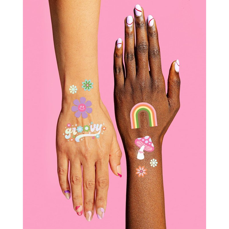 - Party Starter: there is no denying that these groovy rainbow temporary tattoos are super cute and would be the perfect retro party decoration or accessory.