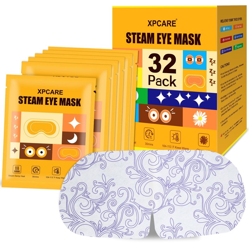 XPCARE 32 Pack Steam Eye Masks for Dry Eyes, SPA Warm Sleep Eye Mask, Disposable Heated Eye Mask for Dark Circles, Puffy Eyes, Relief Stress Eye Fatigue(Chamomile)