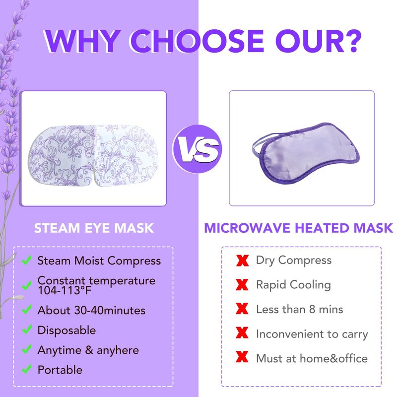- 【Enjoy anytime, anywhere】The Disposable Self Heating Moist Heat Eye Masks adopts a disposable design and independent packaging, making it clean and convenient to use. Suitable for office workers, students, businessmen, etc. You can take eye spas at any time: sleep time, leisure time, lunch break time, flight or train travel time, office rest time.