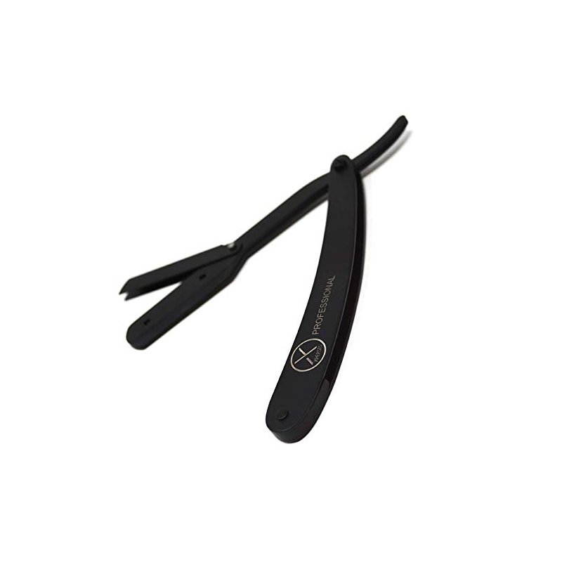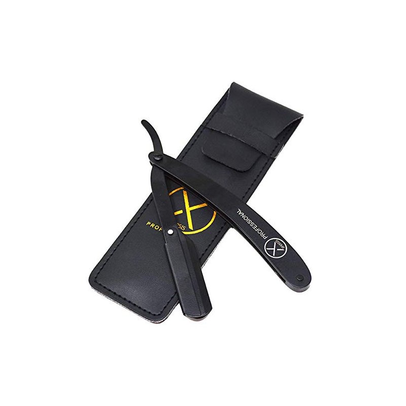 This is a high quality Straight Razor in Matte Black by XPERSIS Professional Company. This Safety Razor is full Carbon Steel construction and features matte black oxidation technology which makes it superior to regular paint and/or plastic alternatives, making this razor super durable and scratch-free.This classic Straight Edge Razor is a timeless masterpiece for men’s shaving. Designed with comfort and stability in mind, the Straight Razor performs well and provides the right holding angle to avoid discomfort. When opened, your ring finger rests on the back handle loop, index and middle fingers on top, and your thumb near the blade compartment. Packaged in a black leatherette pouch to store in safety and style and makes a perfect gift.