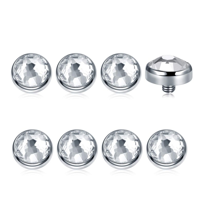 Xpircn 14G Titanium Dermal Anchor Tops Clear CZ Micro Dermal Piercing Jewelry 3mm 4mm 5mm Round Top 8PCS (5mm)