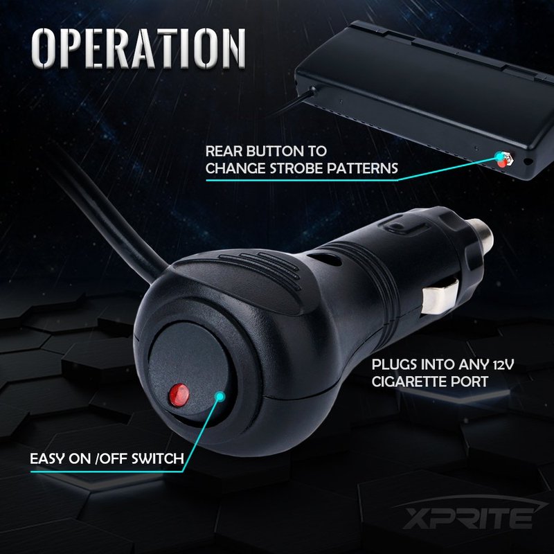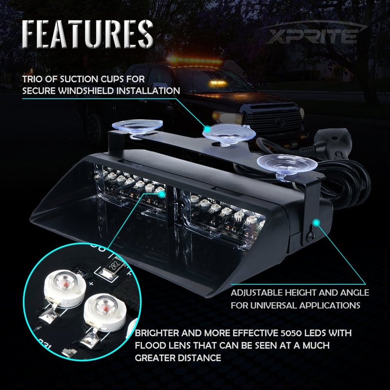 - PACKAGE INCLUDES: One of Xprite Car Vehicle High Intensity 16 LEDs Roof Windshield Dash Emergency Strobe Flash Warning Lights.