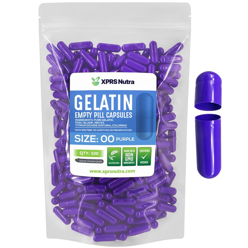 XPRS Nutra Size 00 Empty Capsules - 500 Count Empty Gelatin Capsules - Empty Pill Capsules - DIY Capsule Filling - Fillable Pill Capsules Empty Gel Caps (Purple)