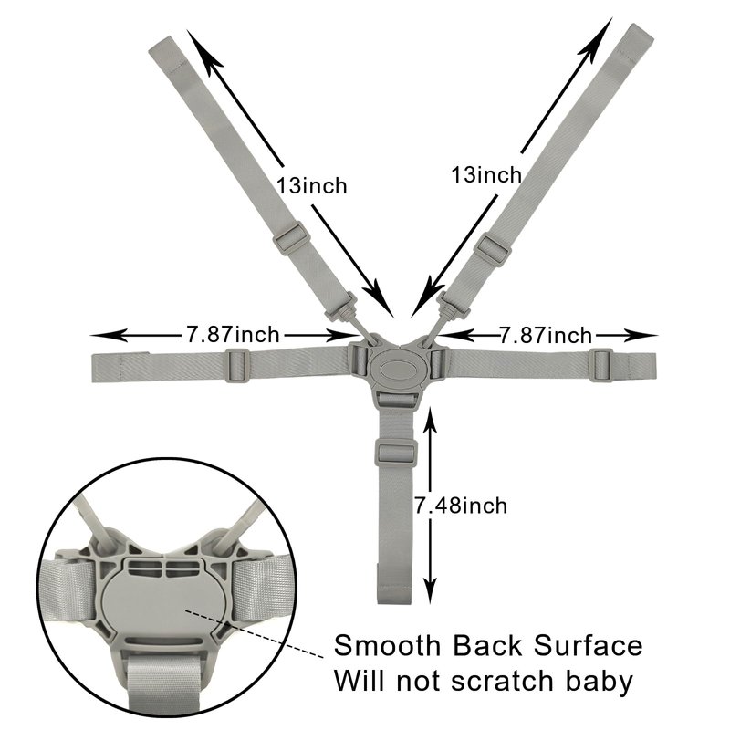 XQIGI High Chair Straps, Replacement 5 Point Harness Straps for Baby High Chair, Harness Belt for Stroller High Chair Pushchair, Safety and Comfort Material (Grey Button)