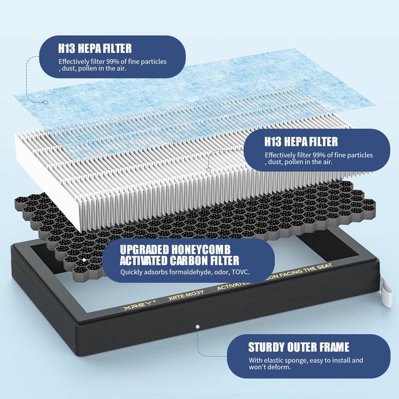 - 【3-STAGE PURIFICATION PROCESS】: The Tesla Model 3 and Model Y HEPA filters have a three-layer filtration system: a pre-filter for large particles, HEPA H13 layer for tiny contaminants, and the activated carbon layer to eliminate odors.