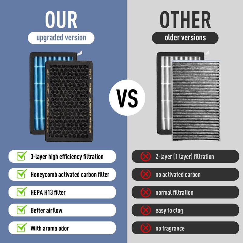 - 【UPGRADED CARBON FILTER】: Our activated carbon filter contains more carbon than other carbon filters on the market and does not interfere with airflow. Our unique honeycomb carbon filter can maximize the absorption of odors in the car. It can always keep the air in your car fresh and clean.