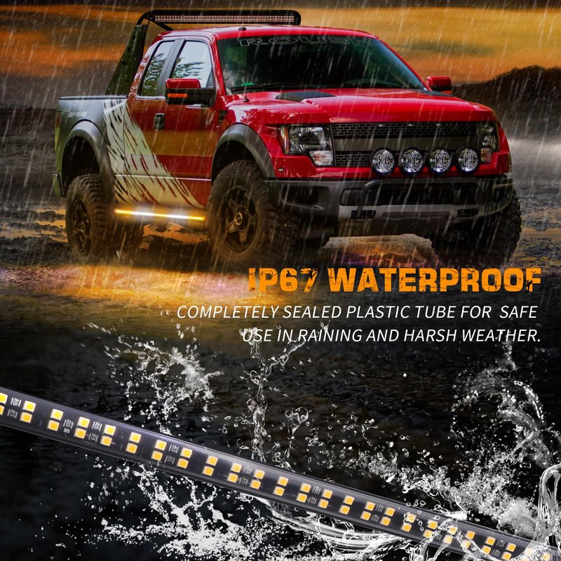 - 【HIGH-QUALITY】This truck lights strip is well-made and lightweight, low consumption, and a service life of 50,000 hours.The clear plastic flexible tube is completely sealed for safe use in harsh weather. Whole led strobe lights strip is IP67 waterproof.
