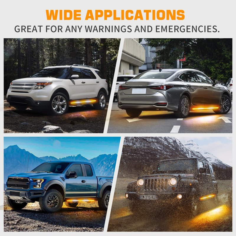 - 【WIDELY APPLICATION】The 2x 60 inch led strobe strip lights widely used for Hazard Warning, Law Enforcement, First Responder, emergency vehicles and tow trucks, construction vehicles, police, EMS, security, snow plow, jeep, postal workers, etc.
