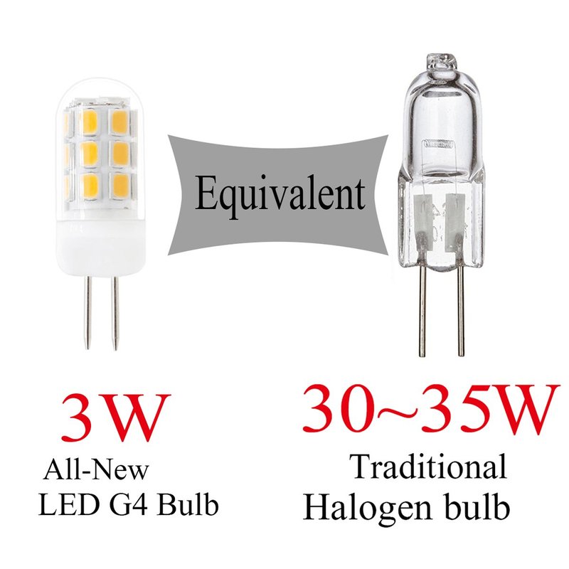 - Energy Saving : Replace G4 20W-35W halogen bulb with 3W G4 LED bulb, save up to 90% on your electricity bill. Voltage: 120V. Please check the fixture size and bulbs size before purchase.