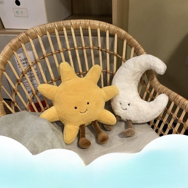 - Size:13.8inches (35 cm) in size ,Soft and cuddly plush toy in the shape of a smiling sun And moon, perfect for kids and adults alike.