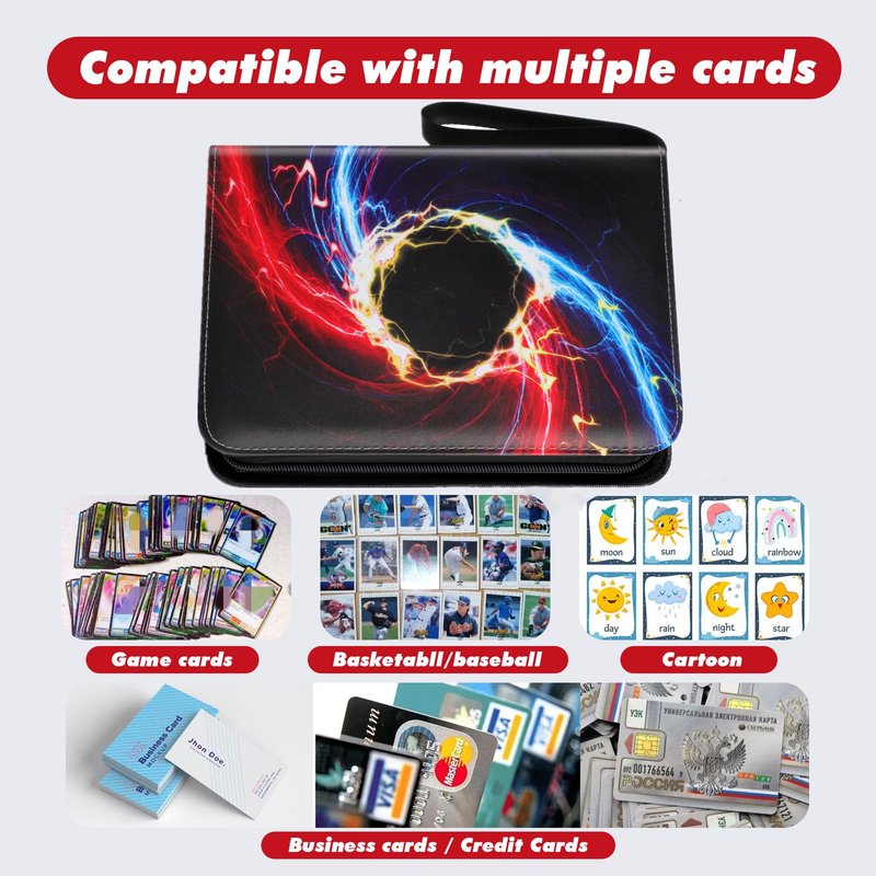 - More Cards Storage Space: This card binder comes with 50 removable sleeves, which can hold up to 400 trading cards with 4 pockets per page. The trading card binder storage case is compatible with svarious standard-sized cards, MTG Card Game, Yu-Gi-Oh, Star Wars X-Wing, Football cards, Baseball cards, Playing cards, etc.