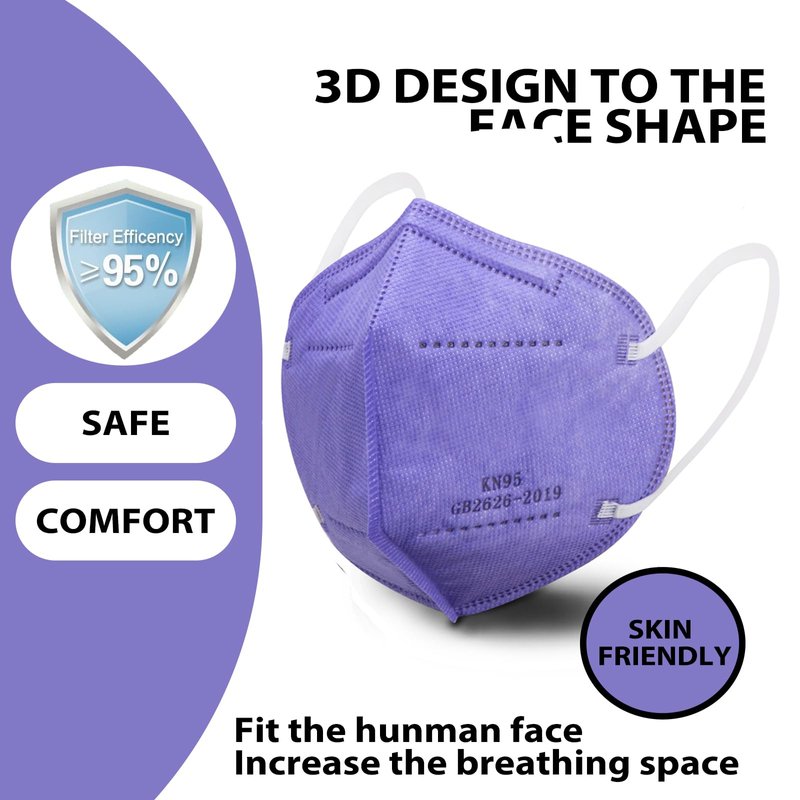 XSNDSENN KN95 Face Masks Individually Wrapped Purple, 100 Packs, 5-Layer Disposable Face Mask for Adults, Against PM 2.5, Filter Efficiency≥95%