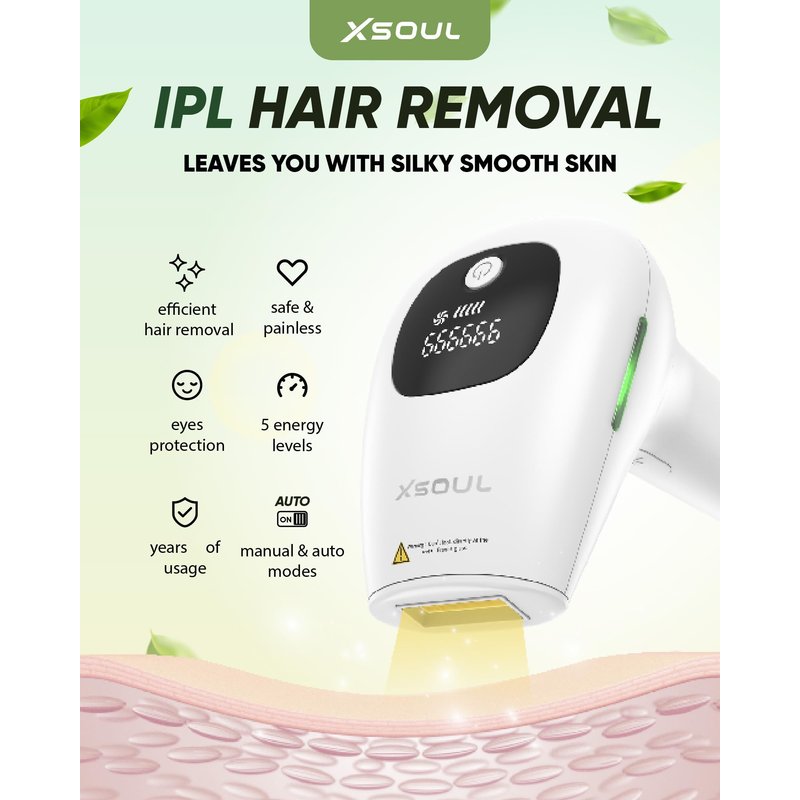 - IPL Hair Removal: The XSOUL IPL Hair Removal Device uses advanced IPL technology to break the cycle of hair regrowth for hair reduction for flawlessly smooth and hairless skin. Designed to bring the professionalism of the beauty salon to you! NOTE: The XSOUL IPL hair removal is a plug-in device – not wireless.