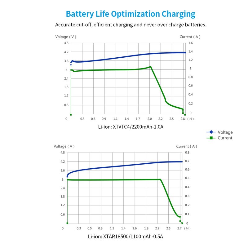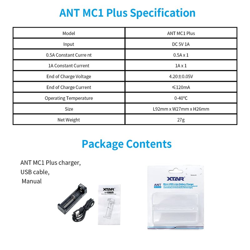 - 18650 battery charger MC1 Plus Automatically chooses the most suitable charging current(0.5A/1A) for batteries to ensure the longest lifespan