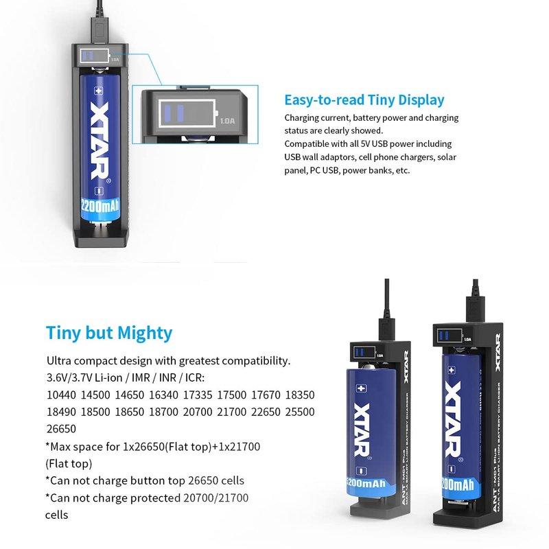 - XTAR MC1 Plus 3.6/3.7V Liion Battery Charger for 10440 14500 18350 18650 20700 26650 25500