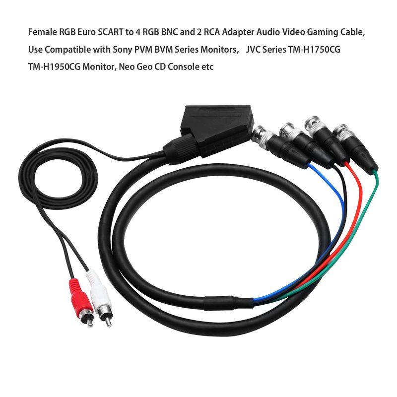 - Compatible with: Connectors A Female Euro SCART, SCART to BNC RCA audio video adapter cable for Sony PVM ( like PVM-14M4A, PVM-1271Q, PVM-1350, PVM-14L2, PVM-2054QM, PVM-1943MD, PVM-20L2MD,PVM-20MDDMDU)PVM, Sony BVM monitors, JVC TM-H1750CG TM-H1950CG Monitors, Ikegami HTM-1990-R Monitors, Neo Geo CD console etc
