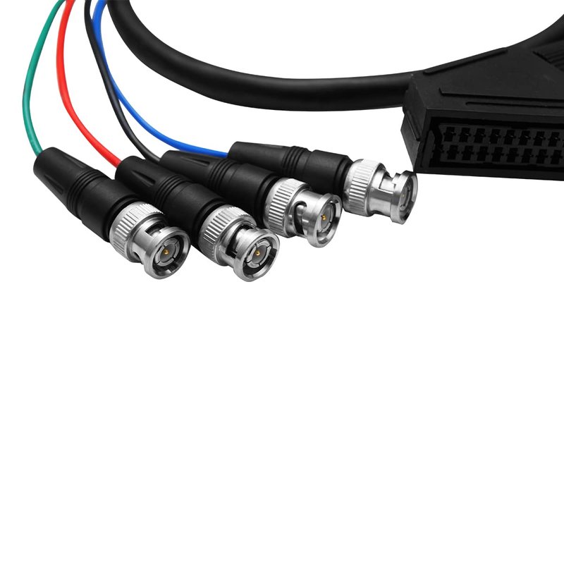 - Features 2: RGB SCART Female Plug is a dedicated audio and video interface. The BNC interface is used for 75 ohm coaxial cable connection to reduce the interference between video signals. It is mainly used to connect high-end home theater products and professional video equipment.Our RGB SCART Female to 4 BNC (Red, Green, Blue & yellow (sync) )and 2 x RCA/Phone connectors, used in monitors and gaming equipment, will have a high degree of restoration of picture quality, shielding bad sound quality, and give you a high-definition game sound quality experience