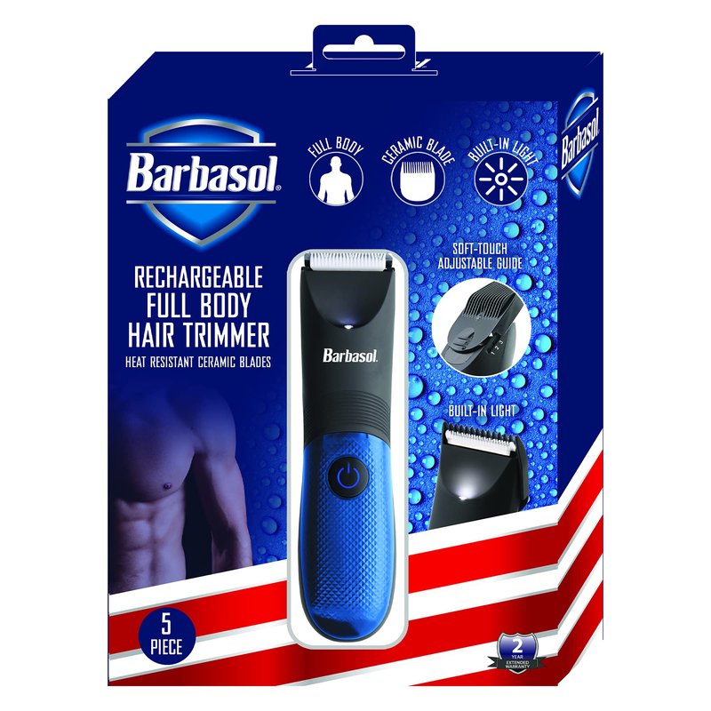 XTREME DIGITAL LIFESTYLE ACCESSORIES Barbasol Waterproof Body Hair Trimmer, Rechargeable 5 Piece Set with Ceramic Blades, Adjustable Comb, Light, Stand