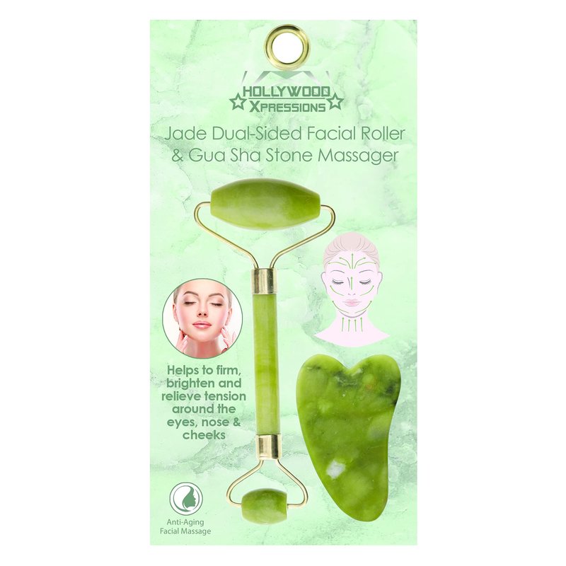 XTREME DIGITAL LIFESTYLE ACCESSORIES Hollywood Women Facial Jade Roller, w/Guasha Stone Trap Package, Green