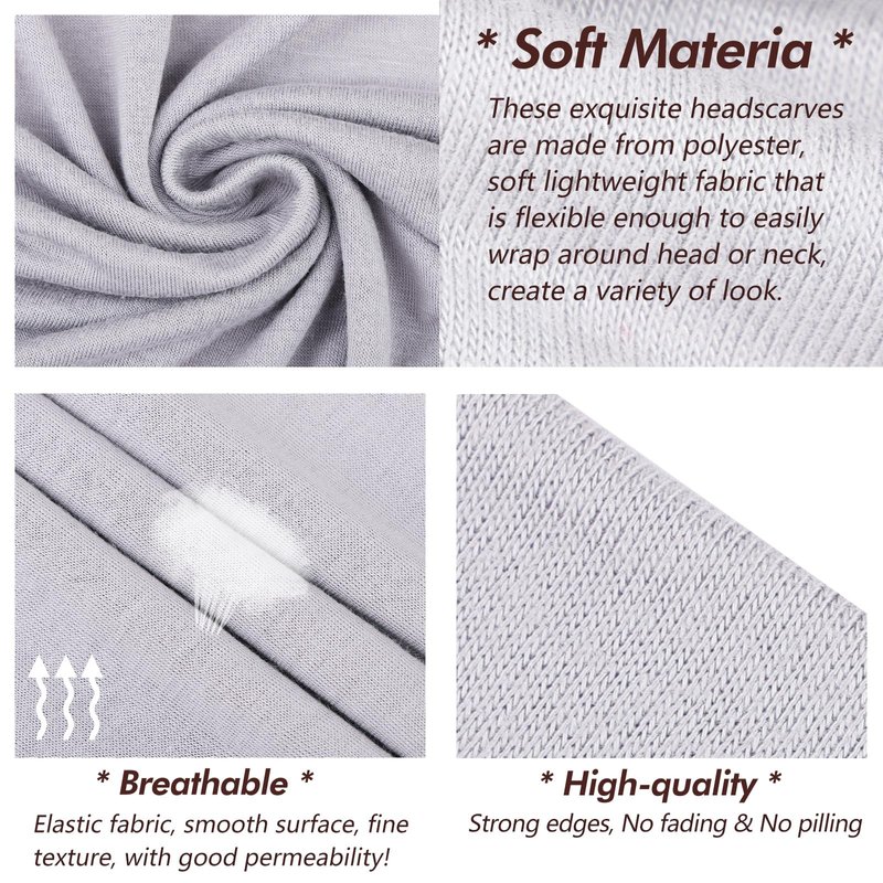 - Design: Solid color design is easier to match with clothes, fashionable headscarf fully covers the entire head. Can be used as a headwrap, beanie hat, neck cover, hair band and many other uses. Simple to wear, wraps around the head in a variety of ways, stretchy and firm without falling off.