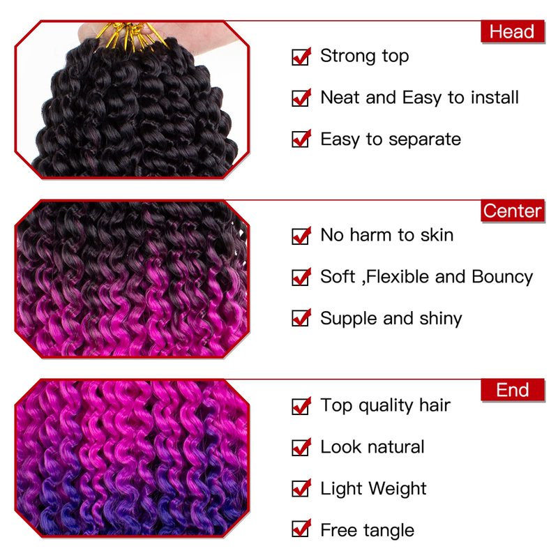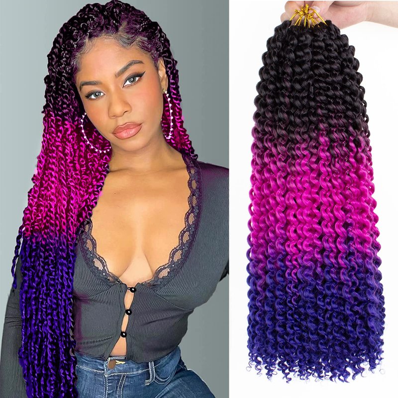 Xtrend 18 Inch Passion Twist Hair Water Wave Crochet Braiding Hair 7 Packs Synthetic Hair Extensions Crochet Braids Hair(16Strands/Pack, Black/Purple/Blue#)