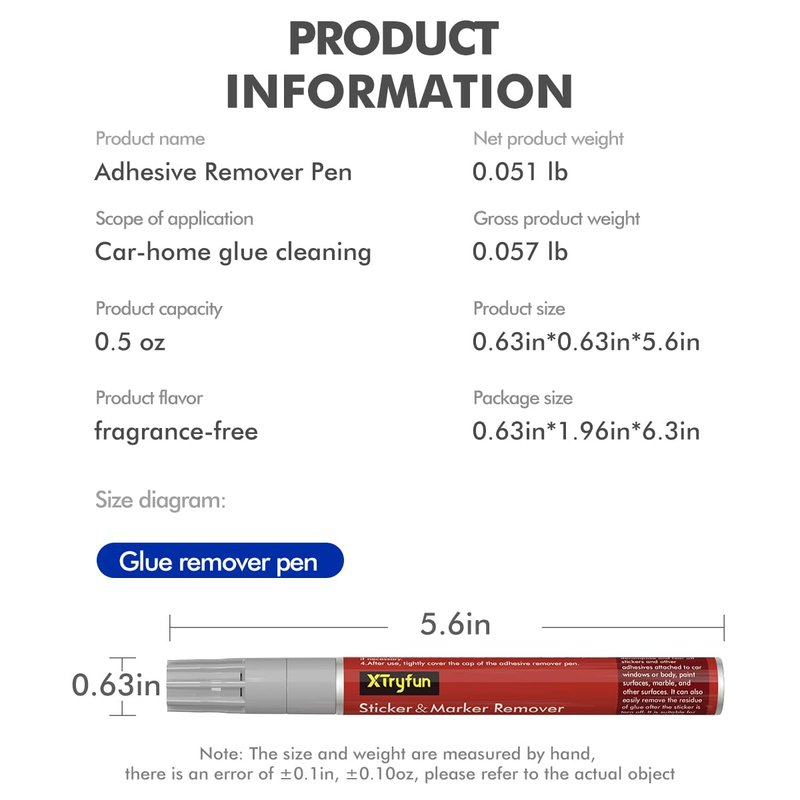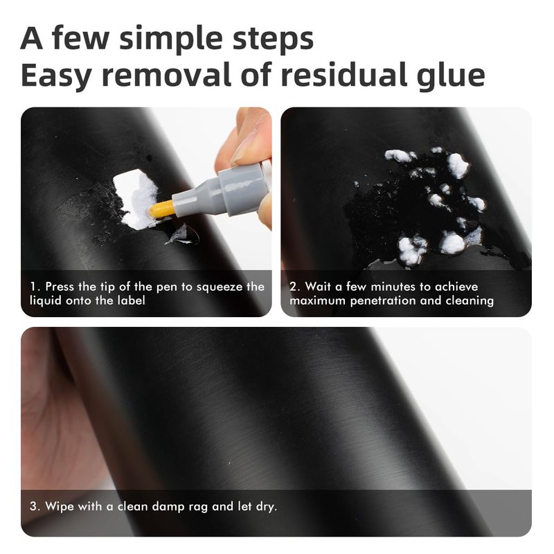 - 【Unique design】 Are you frustrated with the residue left behind when removing stickers or labels? Do you find it challenging to clean them thoroughly with regular adhesive removers, or worry about damaging the surface with a scraper or struggling with imprecise coverage using spray glue removers? Our adhesive remover pen is the perfect solution. With its water-based formula, it Achieve truly effective and rapid adhesive removal without causing any surface damage.