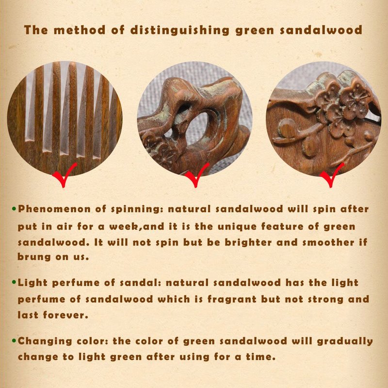 Natural Material: Crafted from genuine green sandalwood, these combs possess a natural woody fragrance and smooth texture, providing a gentle and soothing experience for your hair and scalp.