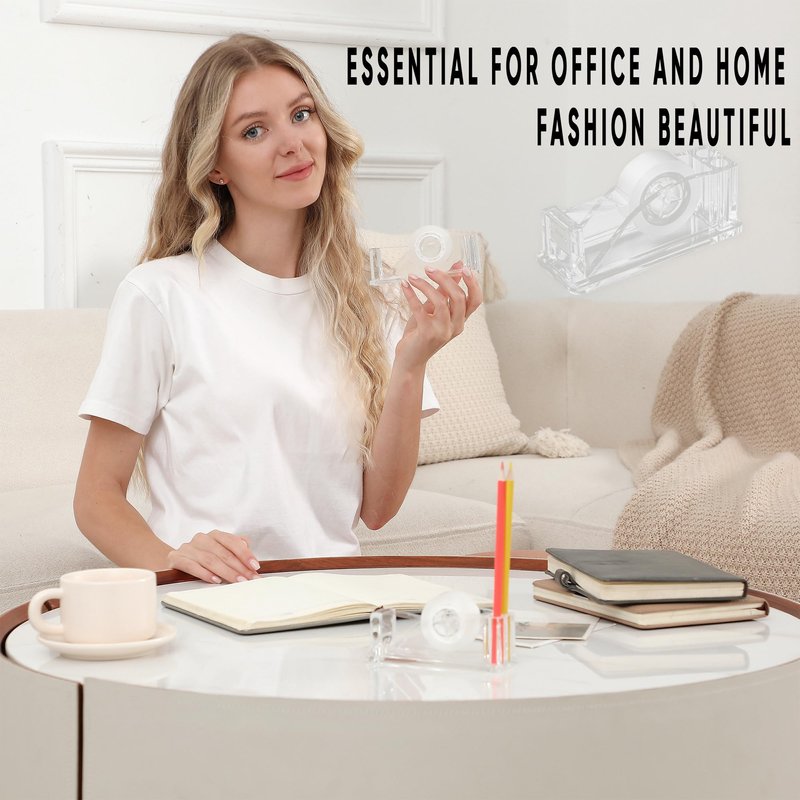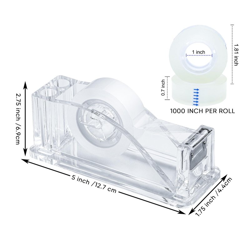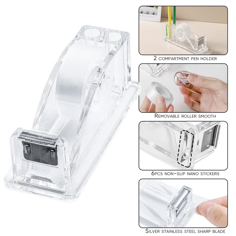 - XUENIN Tape Dispenser: Made From High-Quality Acrylic Material, Ensuring Its Durability And Sturdiness.Crystal Clear. It Features Two Compartments For Holding Two Pens, Making It Convenient For You To Access. Its Sleek And Modern Design Adds A Touch Of Elegance To Any Desk Or Workspace.