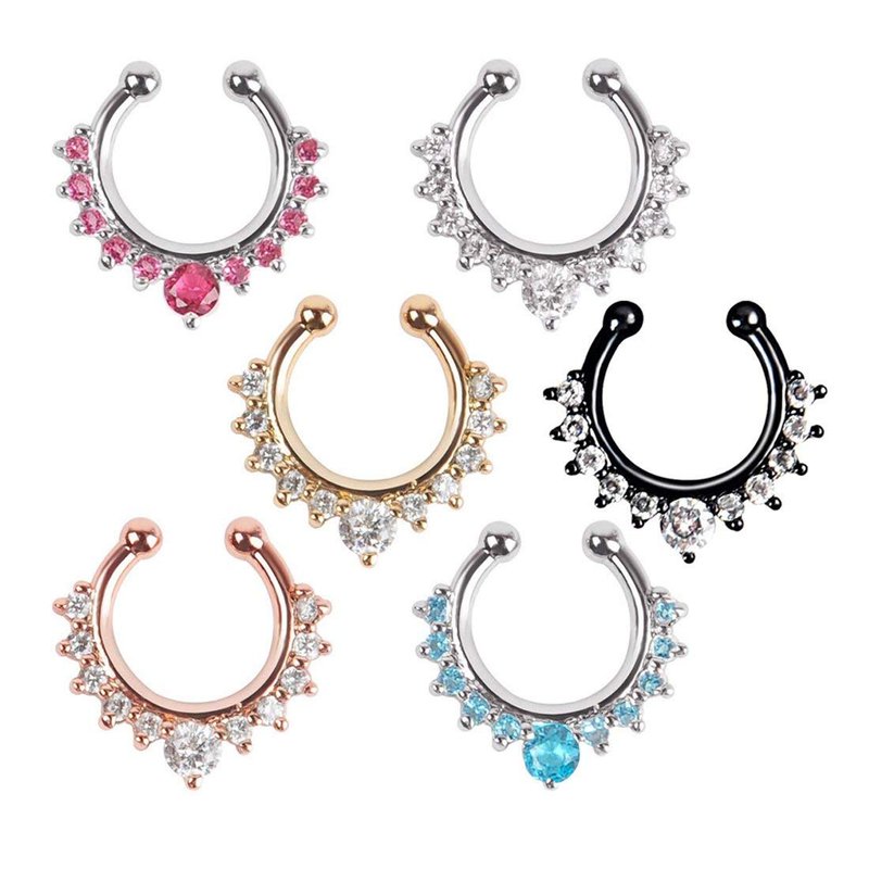 XUKEKOY 6pcs Fake Septum Clicker Nose Ring Rhinestone Non Piercing Hanger Clip Body Jewelry