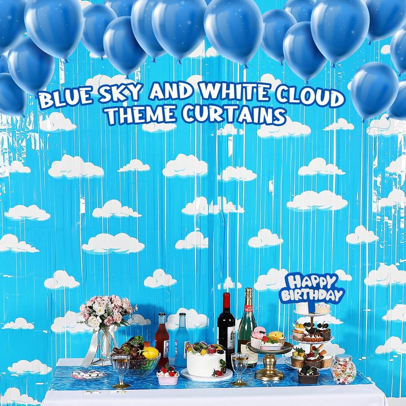 - Product List: you will receive 3 pieces of blue sky and white clouds theme design aluminum foil fringe curtains, each curtain is printed on the comfortable blue sky and white clouds pattern, is a cartoon birthday party and other themed parties dream photo props background