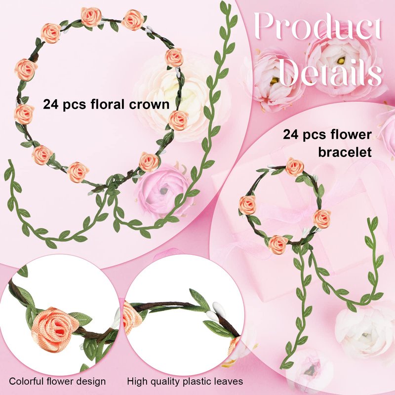 - Sufficient Quantity: you will receive 24 fairy flower crowns and 24 wreath bracelets in total 48 pieces flower garland accessories; The flower crown set is enough quantity for wedding parties and everyone could get their own floral garland headband and wristband accessories