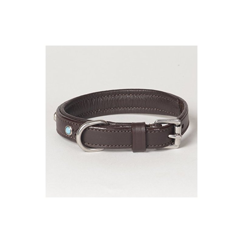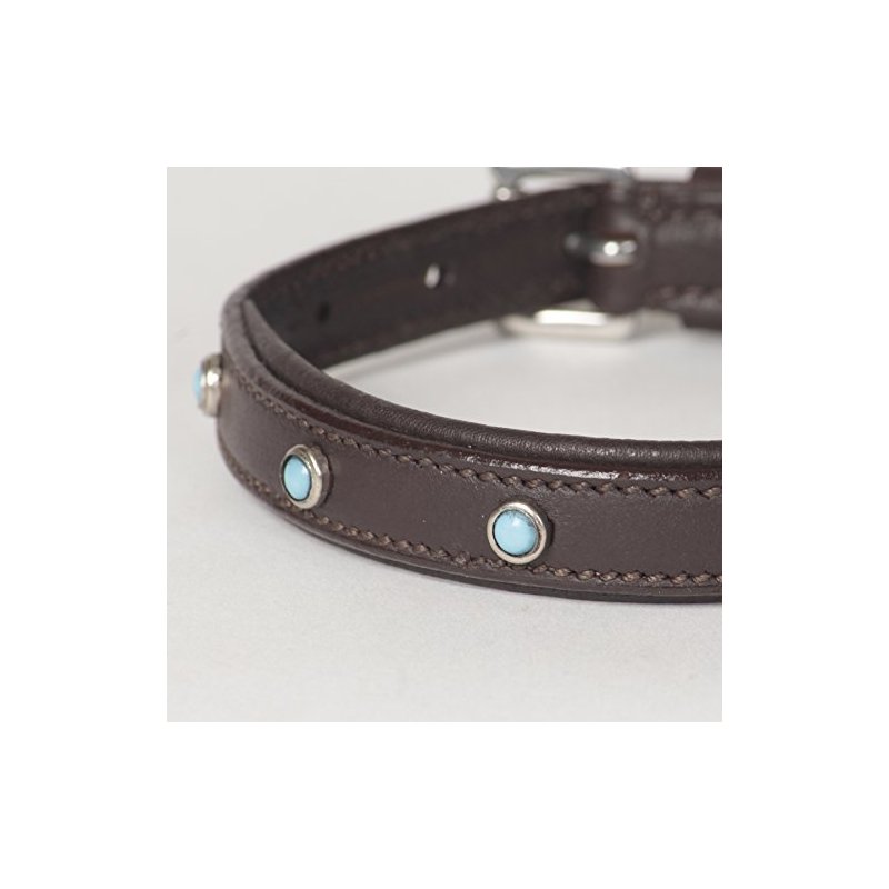 Inspired by traditional American Indian handicraft, turquoise colored beads contrast beautifully with the dark genuine Havana leather. The unique and innovative design of this genuine leather dog collar guarantees admiration wherever you and your best friend might be. Available in 6 sizes: XX-Small though X-Large
