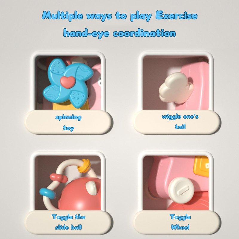 - Fine Motor Skill Development As a Montessori toy for 6-12 months old babies, this toy helps improve hand-eye coordination, fine motor skills, and cognitive development. The vibrant colors and textured design captivate your baby’s attention, encouraging them to explore shapes and movements, making it an ideal educational toy for early learning.