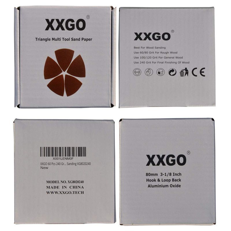 XXGO 60 Pcs 240 Grits 3-1/8 Inch 80mm Triangular Oscillating Tool Sanding Paper for Wood Sanding Fit 80mm Triangular Multi Tool Sanding Pads XG8020240