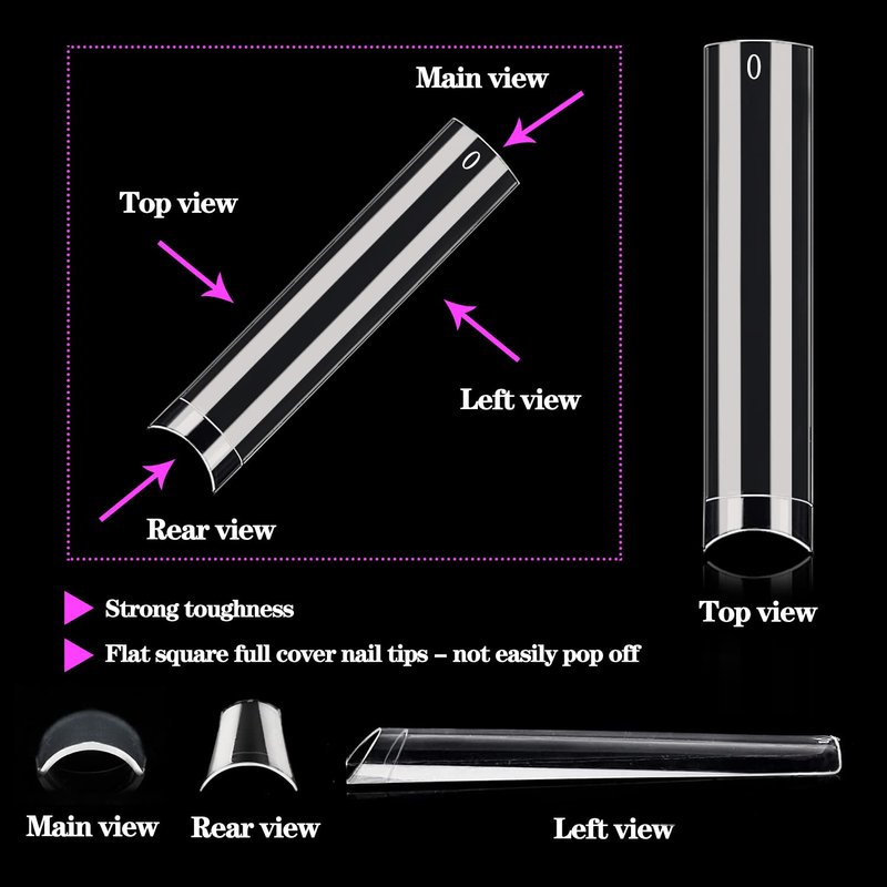 - Easy to Use: Clear fake nail tips with half coverage design, matching a appropriate xxl nail tips firstly and apply a glue on your nail bed and long square nail tips, then gently press and hold for 10 seconds. No matter your are professional nail artist or nail art starter, you can create a many different types of false nails by trimming and polishing.