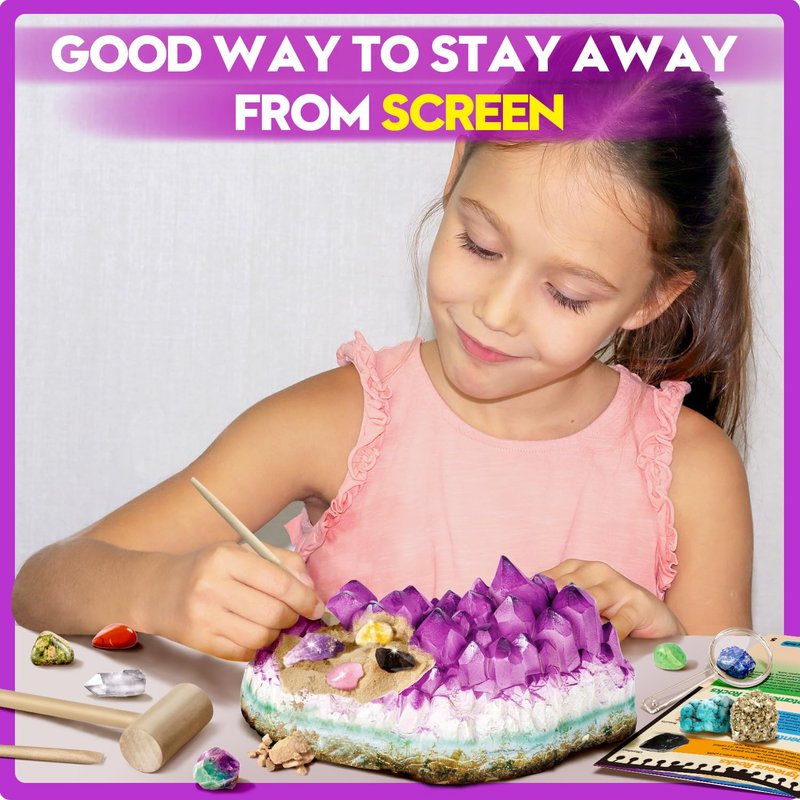 - [EDUCATIONAL GIFT IDEA] Experience science kits for kids age 6-8 +, at least 45 Minutes of Excavation Thrills with Our Crystal Mining Kit! Unleash a captivating hands-on paleontology lesson for kids. Delight in the suspense of uncovering hidden rocks and minerals within the block. The joy of stumbling upon a precious gem creates a sense of dicovery for your little ones. Cultivate patience,and a thirst for knowledge through this engaging exploration with the crystal kit!