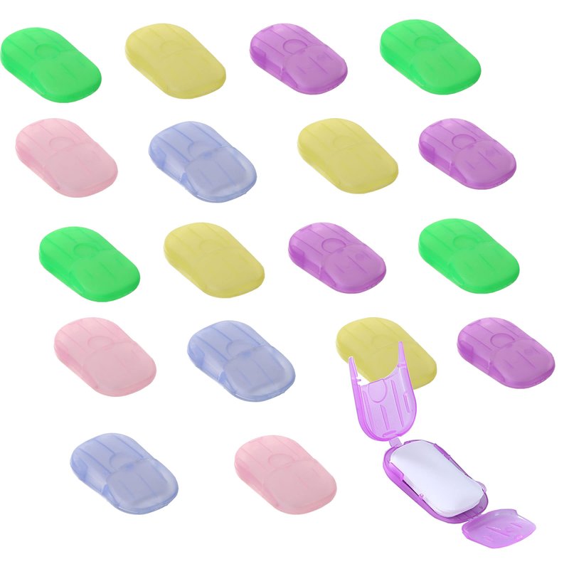 XXYXXY 20 Boxes (400 Sheets) Portable Disposable Travel Hand Soap Sheet Paper Hand Wash Bath Paper Soap Sheet (Random Color)