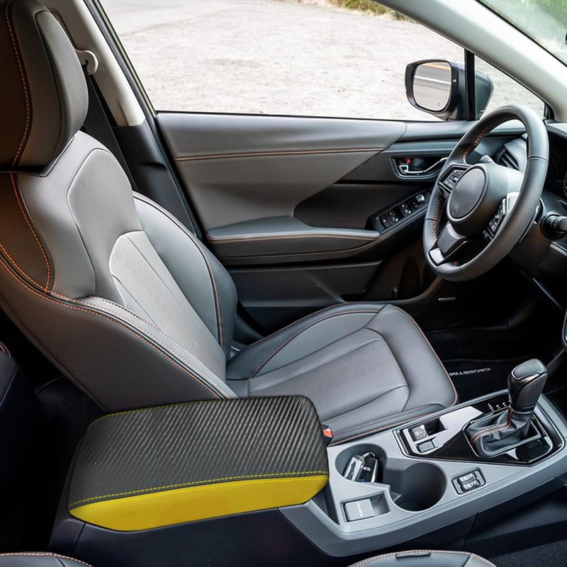 XYHGM Car Center Console Armrest Cover for Subaru Crosstrek/Impreza 2024 2025 Leather Anti-Scratch Central ArmRest Box Lid Seat Cover Protector Cushion Saver Interior Accessories-Carbon Fibre+Yellow