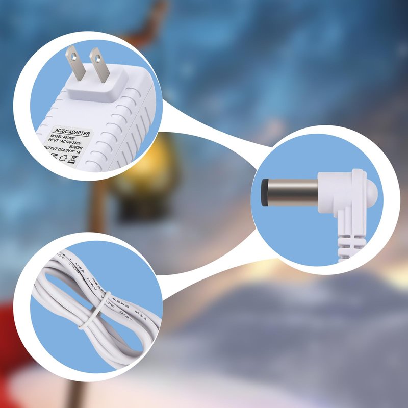 4.5V Power Supply fits for Lemax Skateboard Mushers 74201 Lighted & Animated Christmas Village; 2017 Lemax Christmas Village Foot Warmer B/O (4.5V) 74226; Lemax 74227 Fire Pit Christmas Table Accent Decor Gift; Lemax Set 2 Christmas Village Light Up Snowflake Lamp Posts 74228; Lemax Decoration 9 inch Large Lighted Christmas Tree Lit Xmas Clear White Lights 74264; Lemax Winter Farm Chores 74210; Lemax Songs By The Fire Battery Operated 74225; Lemax Old English Lamp Post 74231; Lemax Multi Light Evergreen Tree 74266.