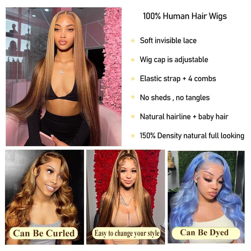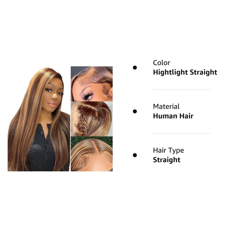 - Highlight Straight Wigs Human Hair Lace: Lace Front Wigs Human Hair Colored,Transparent Lace Can Melt Into Any Skins,This Lace is More Thin and Undetectable Can Blend with Anyone’s Skin Tone Who Wears the Wig , Comfortable Against Skin. and it's Beginner Friendly.